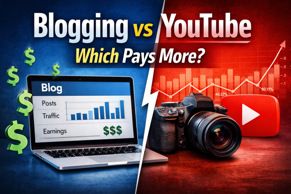 Is post me hum Blogging vs YouTube ko income, effort, time, growth aur long-term earning ke base par compare karenge, taki aap apne goal ke hisaab se sahi decision le sako.